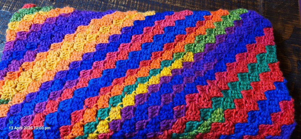 Just recently learnt to do corner to corner crochet, loving how it turned out. A single bed blanket, donated locally.